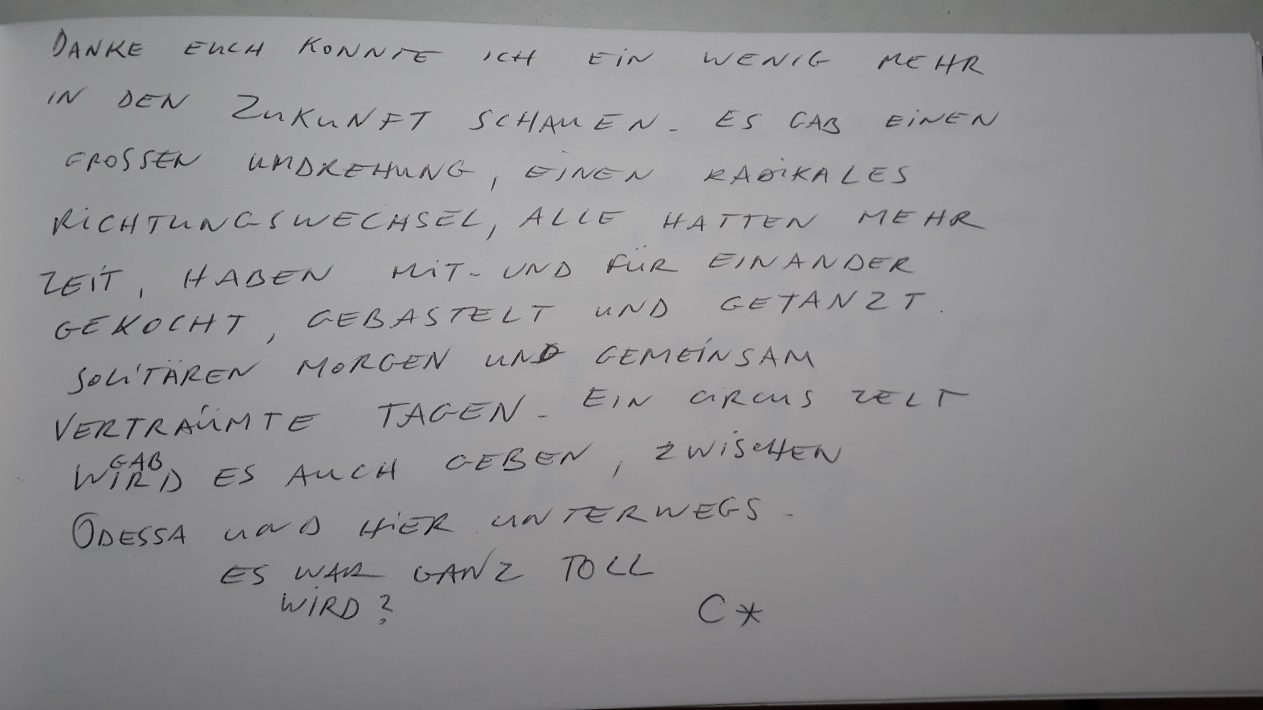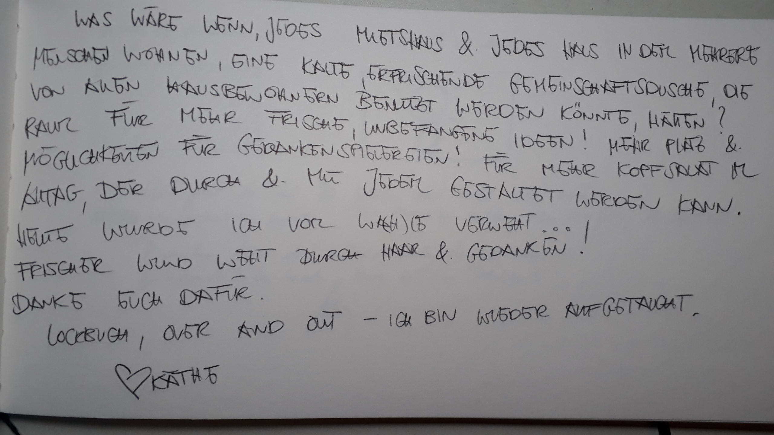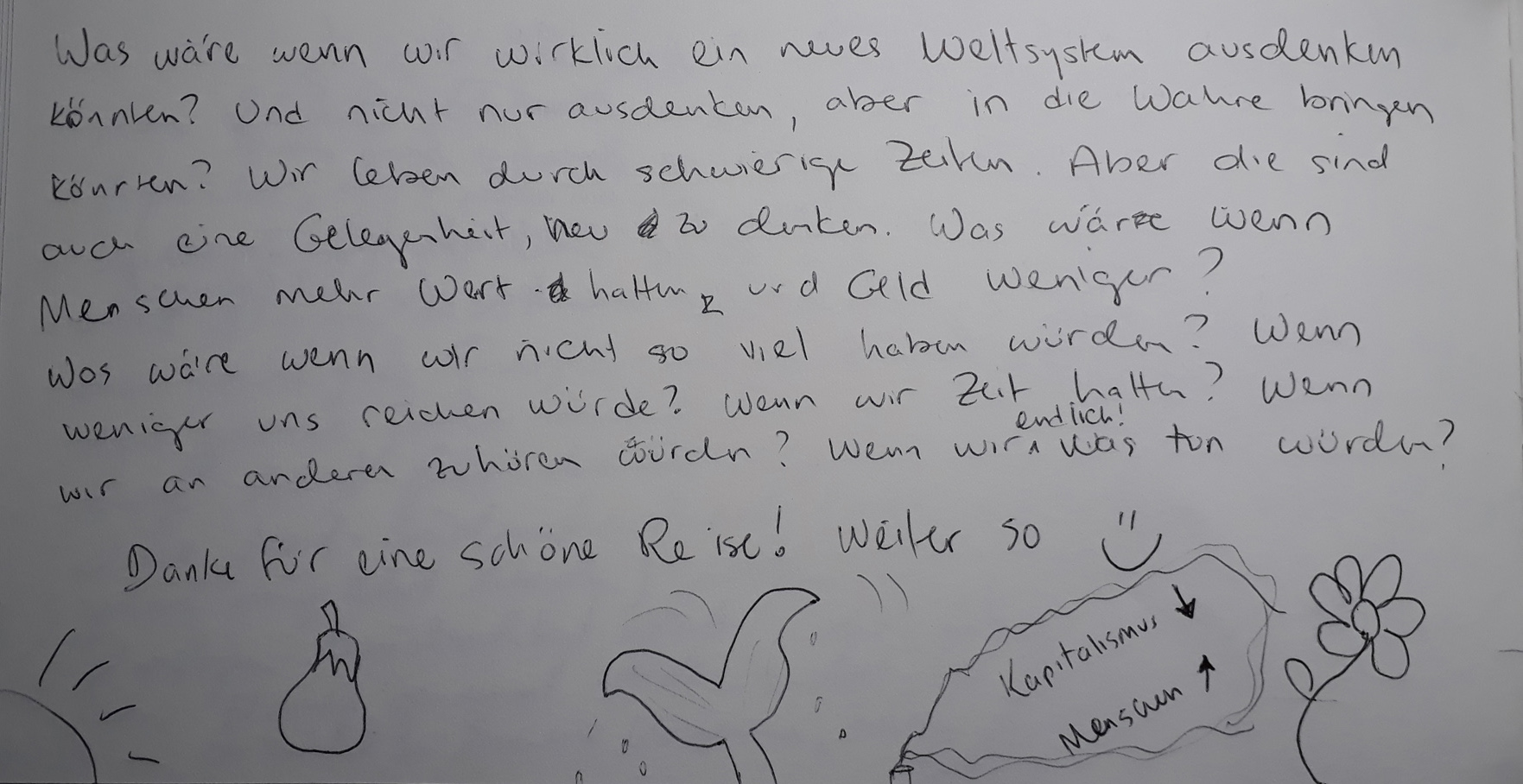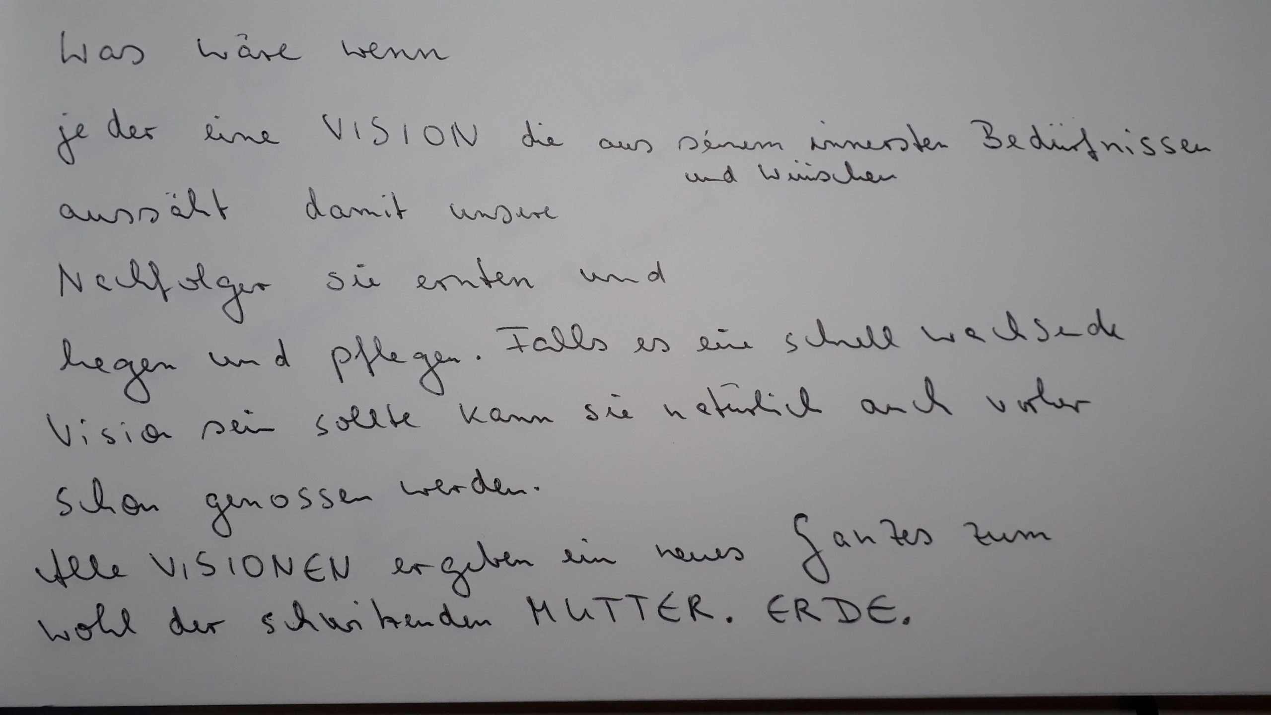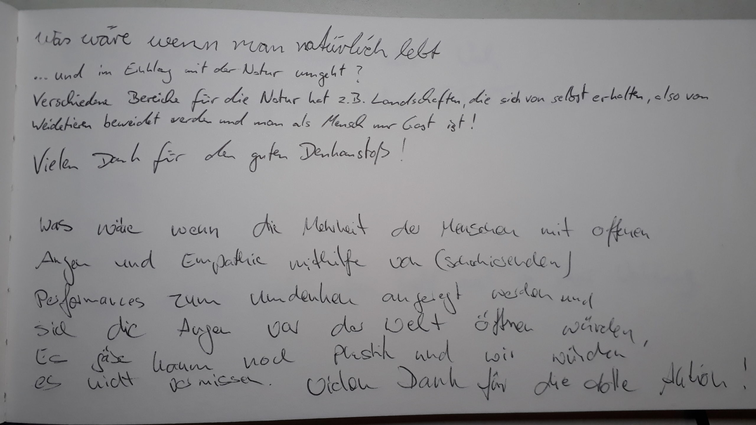Denn aus unserer Sicht braucht es vor dem Hintergrund der Klimakrise und den sich häufenden Katastrophen diese Ideen mehr denn je. So treibt uns die Frage um : „Was liegt mir so sehr am Herzen, dass ich es unter allen widrigen Umständen auch in Zukunft verfolgen würde?“
